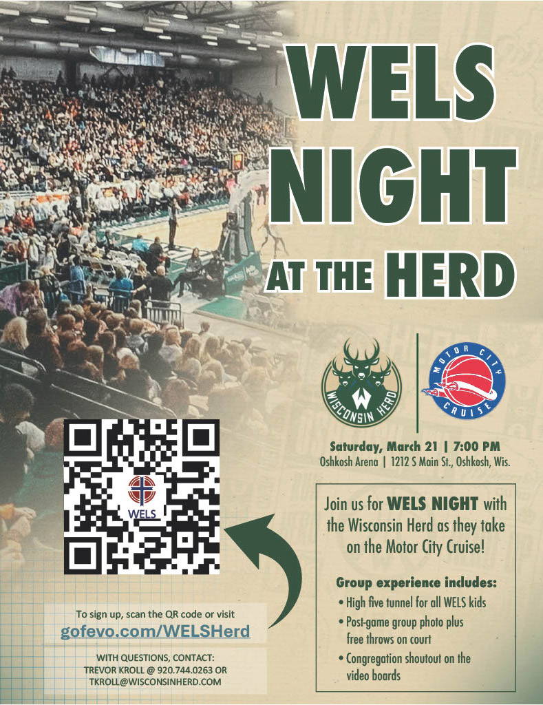 Join WELS members from around the Midwest for an evening of fellowship, fun, and basketball at the WELS Night at the Herd. WELS members will receive discounted tickets and be seated together within each seating category offered.